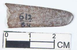 | Description / विवरण | A bone point probably having conical shape. Its colour is black and surface is rough. |