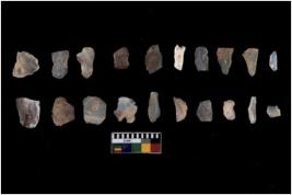 | Description / विवरण | There are n 20 flakes tool; there are multidirectional irregular scar pattern on them; made of short flakes and few have tapering edges. |