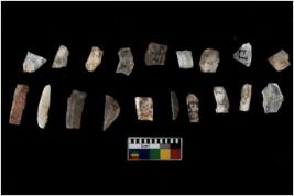 | Description / विवरण | There are n 20 flakes tool; there are multidirectional irregular scar pattern on them; made of short flakes and few have tapering edges. |