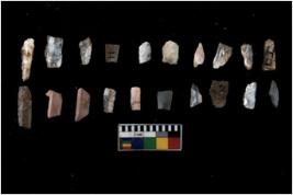 | Description / विवरण | Specimen of flakes tool with prominent flaking marks. It made up of a short flakes with sides trimmed. |