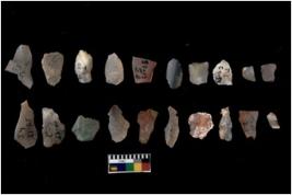 | Description / विवरण | There are n 20 flakes tool; there are multidirectional irregular scar pattern on them, made of short flakes and few have tapering edges. |