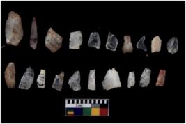 | Description / विवरण | There are n 20 Flake tool; There are multidirectional irregular scar pattern on them. few have blunt edges, Some of them are tapering at one end. |