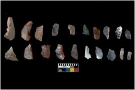| Description / विवरण | There are n 20 flakes tool; there are multidirectional irregular scar pattern on them, made of short flakes and few have tapering edges. |