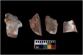 | Description / विवरण | Four utilised worked cores with sharp edges. Some of them are tapering at one end. Removal of flakes from few sides. |