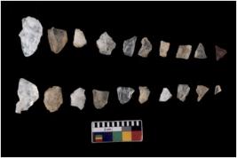 | Description / विवरण | There are n 20 flakes tool; there are multidirectional irregular scar pattern on them, made of short flakes and few have tapering edges. |