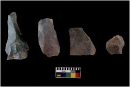 | Description / विवरण | There are n 4 cores; there are multidirectional irregular scar pattern on them. The flake scars are seen on all sides. |