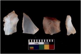 | Description / विवरण | Four utilised worked cores with sharp edges. Some of them are tapering at one end. Removal of flakes from few sides. |