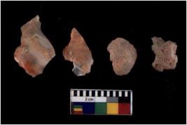 | Description / विवरण | Four utilised worked cores with sharp edges. Some of them are tapering at one end. Removal of flakes from few sides. |