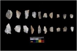 | Description / विवरण | There are n 20 flakes tool; there are multidirectional irregular scar pattern on them, made of short flakes and few have tapering edges. |