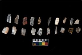 | Description / विवरण | Specimen of flakes tool with prominent flaking marks. It made up of a short flakes with sides trimmed. |