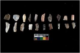 | Description / विवरण | There are n 20 Flake tool; There are multidirectional irregular scar pattern on them. few have blunt edges, Some of them are tapering at one end. |