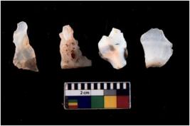 | Description / विवरण | Four utilised worked cores with sharp edges. Some of them are tapering at one end. Removal of flakes from few sides. |