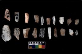 | Description / विवरण | There are n 20 Flake tool; There are multidirectional irregular scar pattern on them. few have blunt edges, Some of them are tapering at one end. |