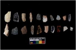| Description / विवरण | There are n 20 Flake tool; There are multidirectional irregular scar pattern on them. few have blunt edges, Some of them are tapering at one end. |
