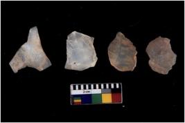 | Description / विवरण | Four utilised worked cores with sharp edges. Some of them are tapering at one end. Removal of flakes from few sides. |