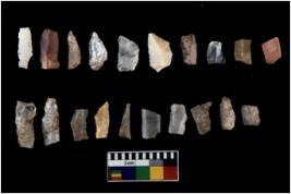 | Description / विवरण | Specimen of flakes tool with prominent flaking marks. It made up of a short flakes with sides trimmed. |