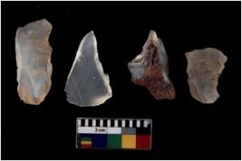 | Description / विवरण | Four utilised worked cores with sharp edges. Some of them are tapering at one end. Removal of flakes from few sides. |