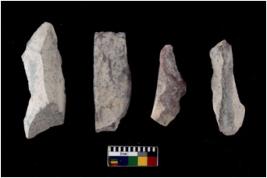 | Description / विवरण | There are n 4 flakes tool; there are flakes tool with prominent flaking marks. It made up of a large flakes with sides trimmed. It is rectangular in shaped. |