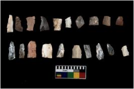 | Description / विवरण | There are n 20 flakes tool; there are multidirectional irregular scar pattern on them; made of short flakes and few have tapering edges. |