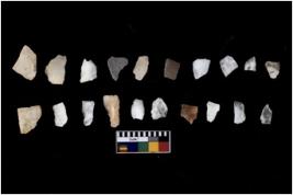 | Description / विवरण | There are n 20 flakes tool; there are multidirectional irregular scar pattern on them, made of short flakes and few have tapering edges. |