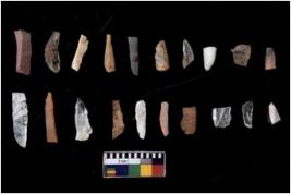 | Description / विवरण | There are n 20 Flake tool; There are multidirectional irregular scar pattern on them. few have blunt edges, Some of them are tapering at one end. |
