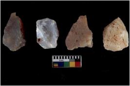 | Description / विवरण | Four utilised worked cores with sharp edges. Some of them are tapering at one end. Removal of flakes from few sides. |