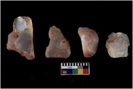 | Description / विवरण | Four utilised worked cores with sharp edges. Some of them are tapering at one end. Removal of flakes from few sides. |