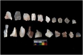 | Description / विवरण | There are n 20 Flake tool; There are multidirectional irregular scar pattern on them.few have blunt edges, Some of them are tapering at one end. |
