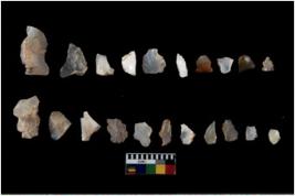| Description / विवरण | There are n 20 Flake tool; There are multidirectional irregular scar pattern on them.few have blunt edges, Some of them are tapering at one end. |