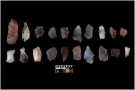 | Description / विवरण | There are n 20 Flake tool; There are multidirectional irregular scar pattern on them. few have blunt edges, Some of them are tapering at one end. |
