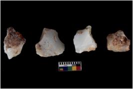 | Description / विवरण | Four utilised worked cores with sharp edges. Some of them are tapering at one end. Removal of flakes from few sides. |