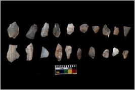 | Description / विवरण | There are n 20 Flake tool; There are multidirectional irregular scar pattern on them.few have blunt edges, Some of them are tapering at one end. |