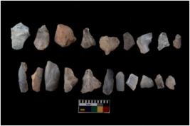 | Description / विवरण | There are n 20 Flake tool; There are multidirectional irregular scar pattern on them. few have blunt edges, Some of them are tapering at one end. |