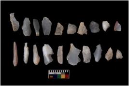 | Description / विवरण | There are n 20 flakes tool; there are multidirectional irregular scar pattern on them, made of short flakes and few have tapering edges. |