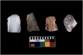 | Description / विवरण | Four worked utilised cores. Flakes removed from few sides. Most of them are uneven and few are tapering at one end. |