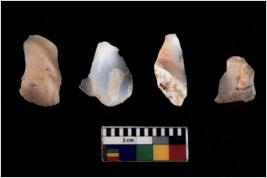 | Description / विवरण | Four worked utilised cores. Flakes removed from few sides. Most of them are uneven and few are tapering at one end. |
