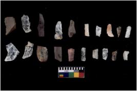 | Description / विवरण | There are n 20 Flake tool; There are multidirectional irregular scar pattern on them. few have blunt edges, Some of them are tapering at one end. |