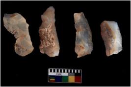 | Description / विवरण | Four worked utilised cores. Flakes removed from few sides. Most of them are uneven and few are tapering at one end. |