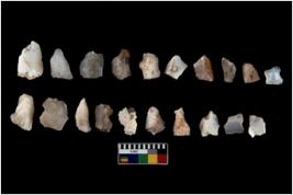 | Description / विवरण | There are n 20 Flake tool; There are multidirectional irregular scar pattern on them.few have blunt edges, Some of them are tapering at one end. |