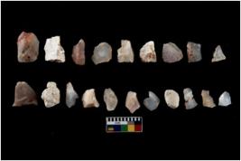 | Description / विवरण | There are n 20 Flake tool; There are multidirectional irregular scar pattern on them.few have blunt edges, Some of them are tapering at one end. |