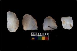 | Description / विवरण | Four worked utilised cores. Flakes removed from few sides. Most of them are uneven and few are tapering at one end. |
