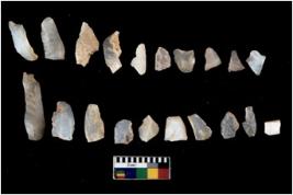| Description / विवरण | There are n 20 Flake tool; There are multidirectional irregular scar pattern on them.few have blunt edges, Some of them are tapering at one end. |