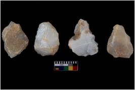 | Description / विवरण | Four worked utilised cores. Flakes removed from few sides. Most of them are uneven and few are tapering at one end. |
