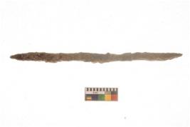 | Description / विवरण | A long nail with sharp pointed functional bottom end and round slightly projected top. It is highly rusted in present condition. |