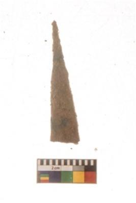 | Description / विवरण | A long nail with sharp pointed functional bottom end and triangular cross section. It is highly rusted in present condition. |