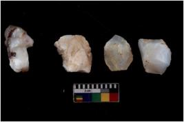 | Description / विवरण | Four worked utilised cores. Flakes removed from few sides. Most of them are uneven and few are tapering at one end. |