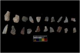 | Description / विवरण | Specimen of flakes tool with prominent flaking marks. It made up of a short flakes with sides trimmed. |
