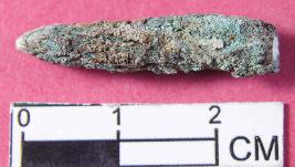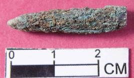 | Description / विवरण | A fragment of copper nail with pointed end and irregular shape and size. It has rough surface and is fully corroded |