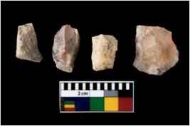 | Description / विवरण | Specimen of a cores with several broad fluted marks. Some of them are tapering at one end. |
