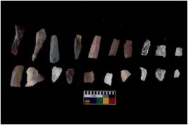 | Description / विवरण | There are n 20 Flake tool; There are multidirectional irregular scar pattern on them. few have blunt edges, Some of them are tapering at one end. |